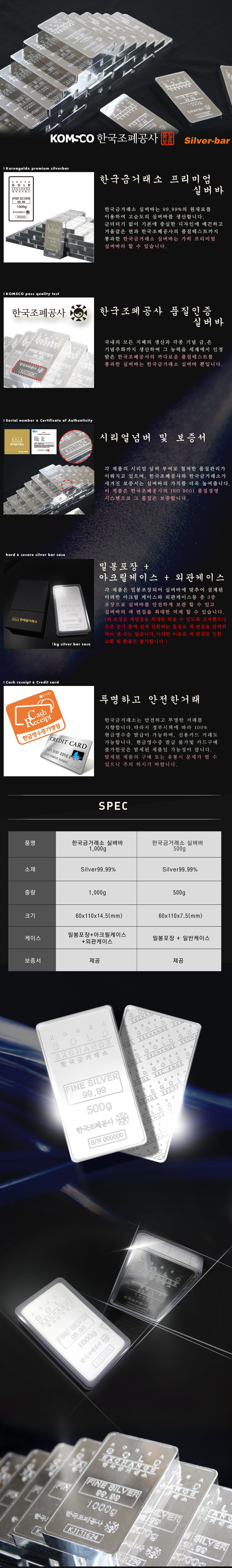 한국조폐공사 품질인증 실버바 500g